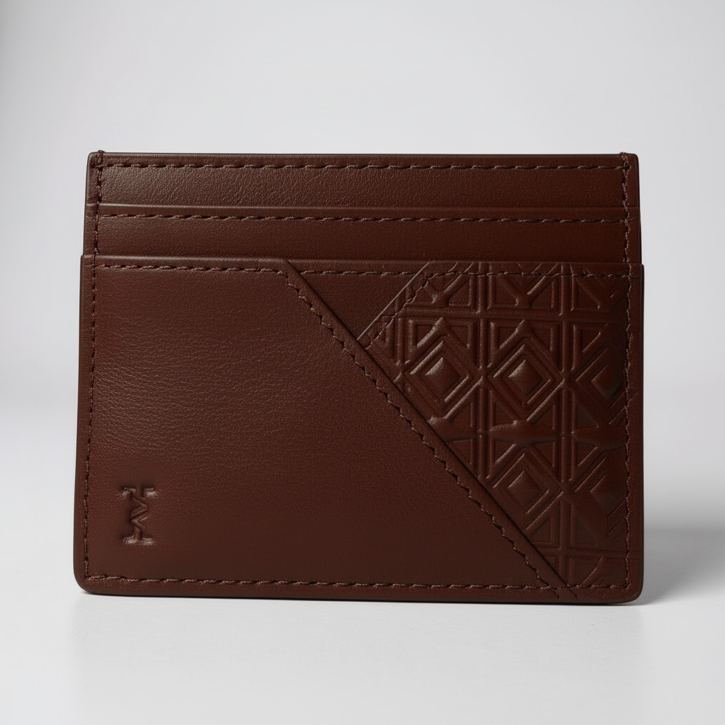 Fabriqué en cuir véritable, il présente à l’avant notre motif embossé inspiré des codes graphiques traditionnels, élément identitaire de la Maison. Son format fin lui permet de se glisser facilement dans une poche ou un sac tout en conservant une excellente tenue dans le temps.
